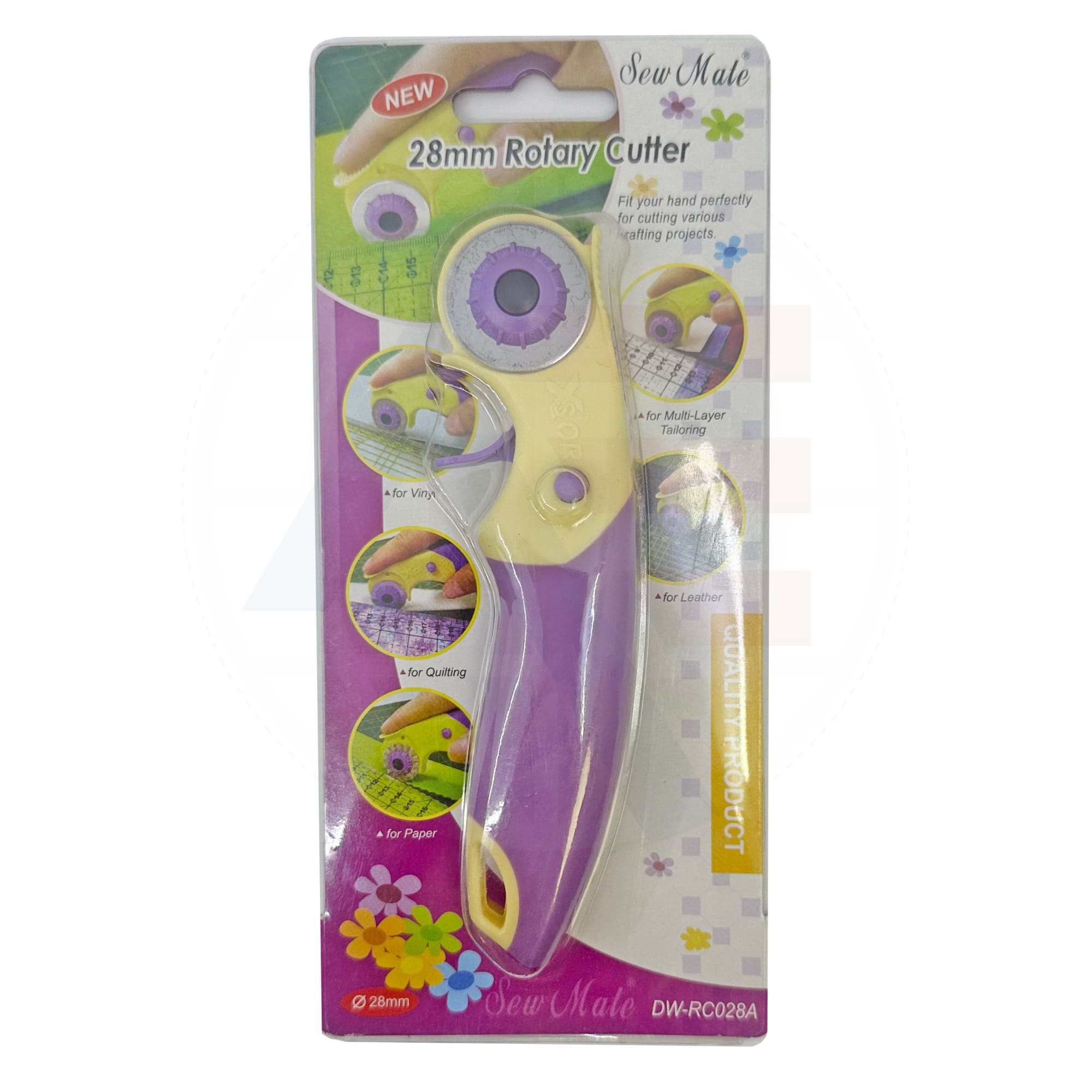 This handy RC028A 28mm manual rotary cutter is useful for cutting both paper and fabrics, making it an ideal accessory for sewing machinists.