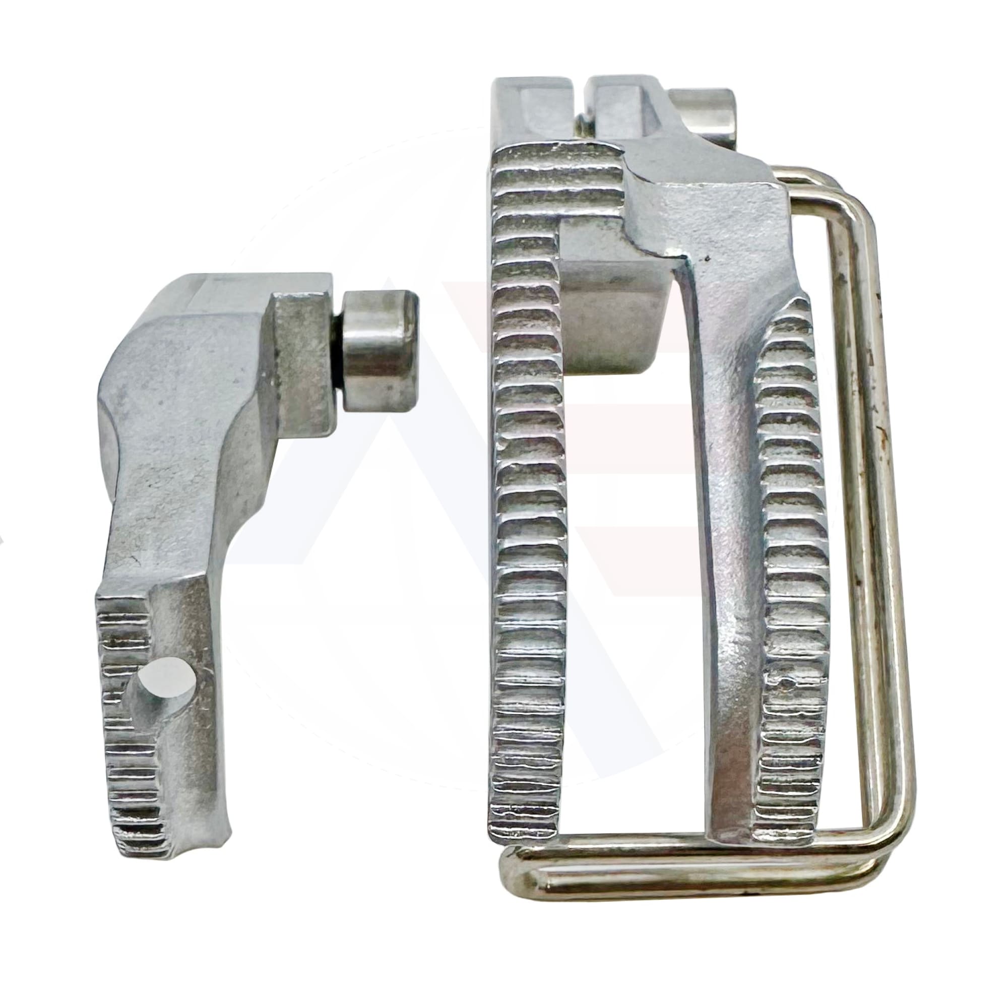 Durkopp Adler KP767TG piping foot set including the inner and outer foot. The double toe outer foot has a cording groove to the left of the needle, which is integrated into both feet. Suitable for use with Durkopp Adler models 367, 467, and 767, Juki LU-2210, and Brother B891. Please select your required size from the options provided.