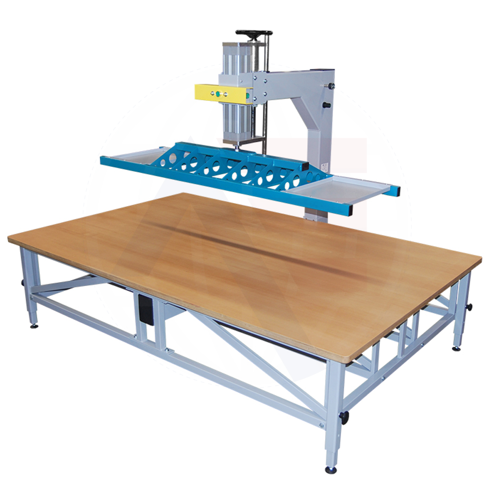 - Pneumatic press for upholstery designed for increased efficiency in furniture industry.
