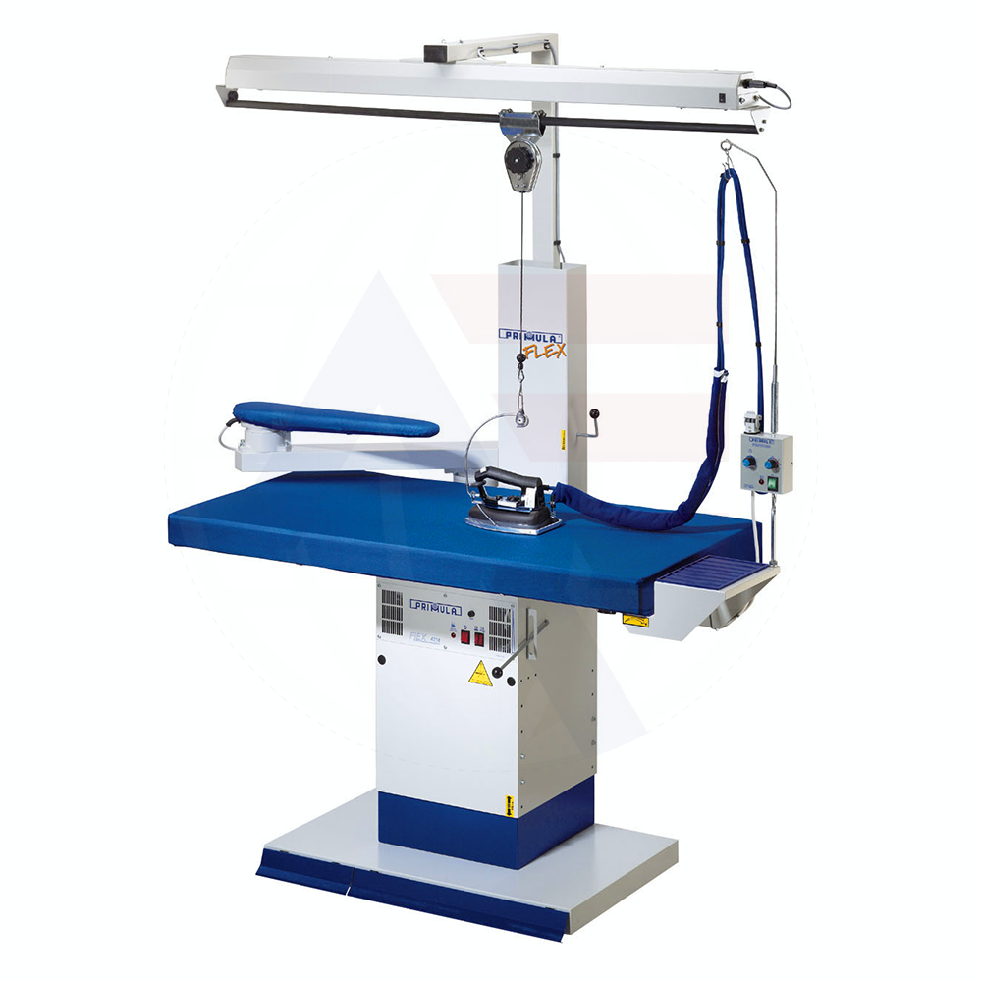 - Additional accessories including a swivel arm, buck, Vario system, iron gantry, steam iron, and lighting system
