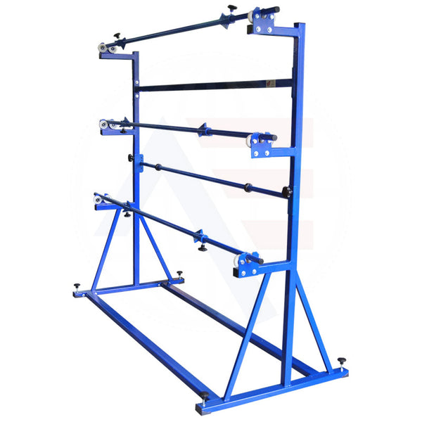 - Universal roll racks designed for fabric roll storage or feeding.
