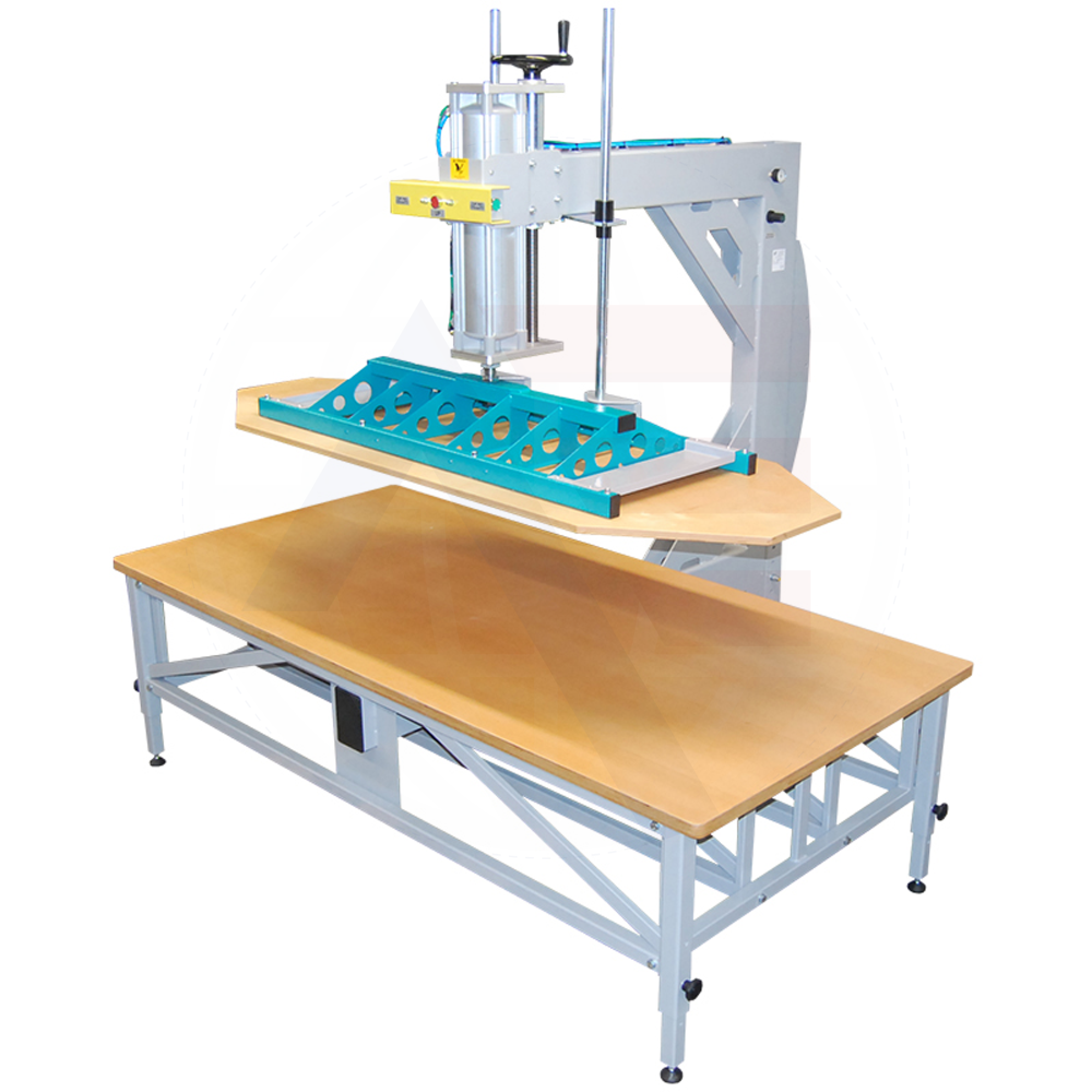 - Pneumatic press for upholstery designed for increased efficiency in furniture industry.
