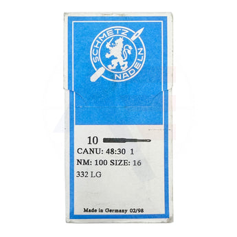 Schmetz 332LG size 100 needles in a pack of 10. Please note that these needles have now been discontinued so will not be restocked once the current supply is sold out.