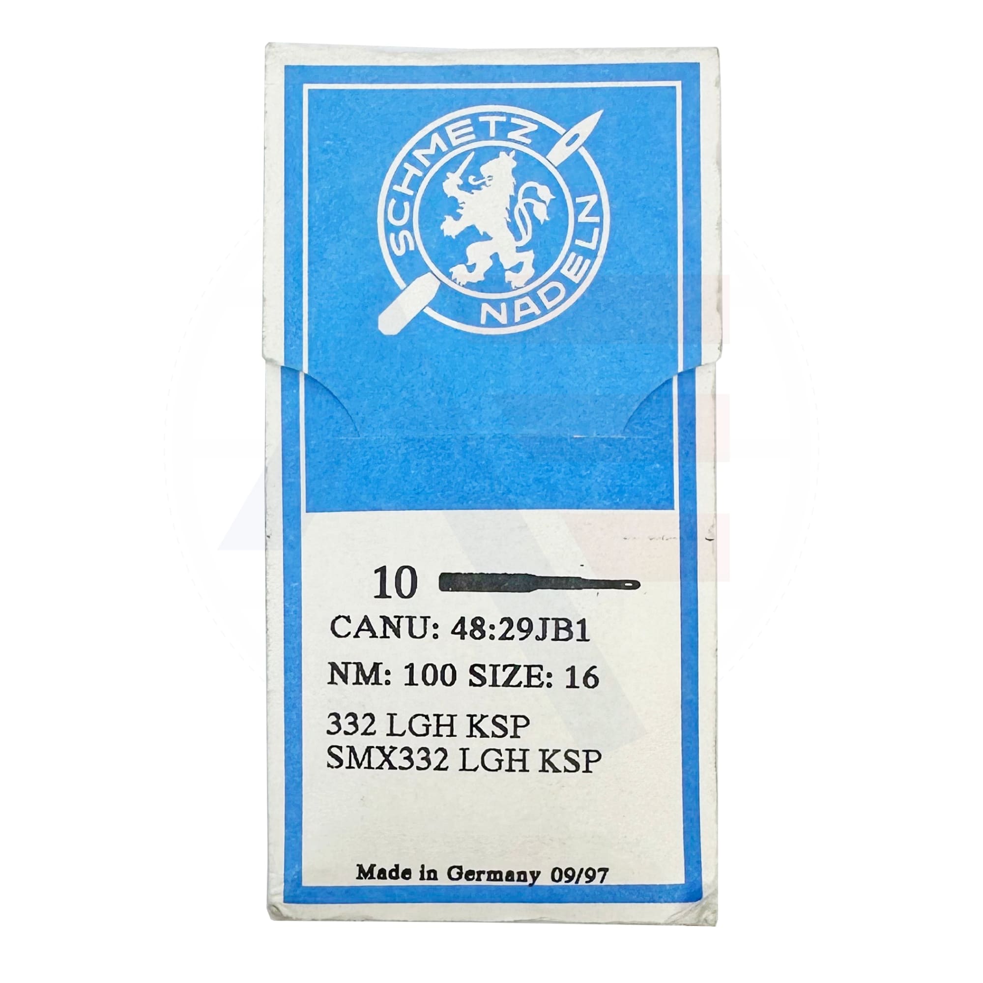 Schmetz 332LGH size 100 needles in a pack of 10.