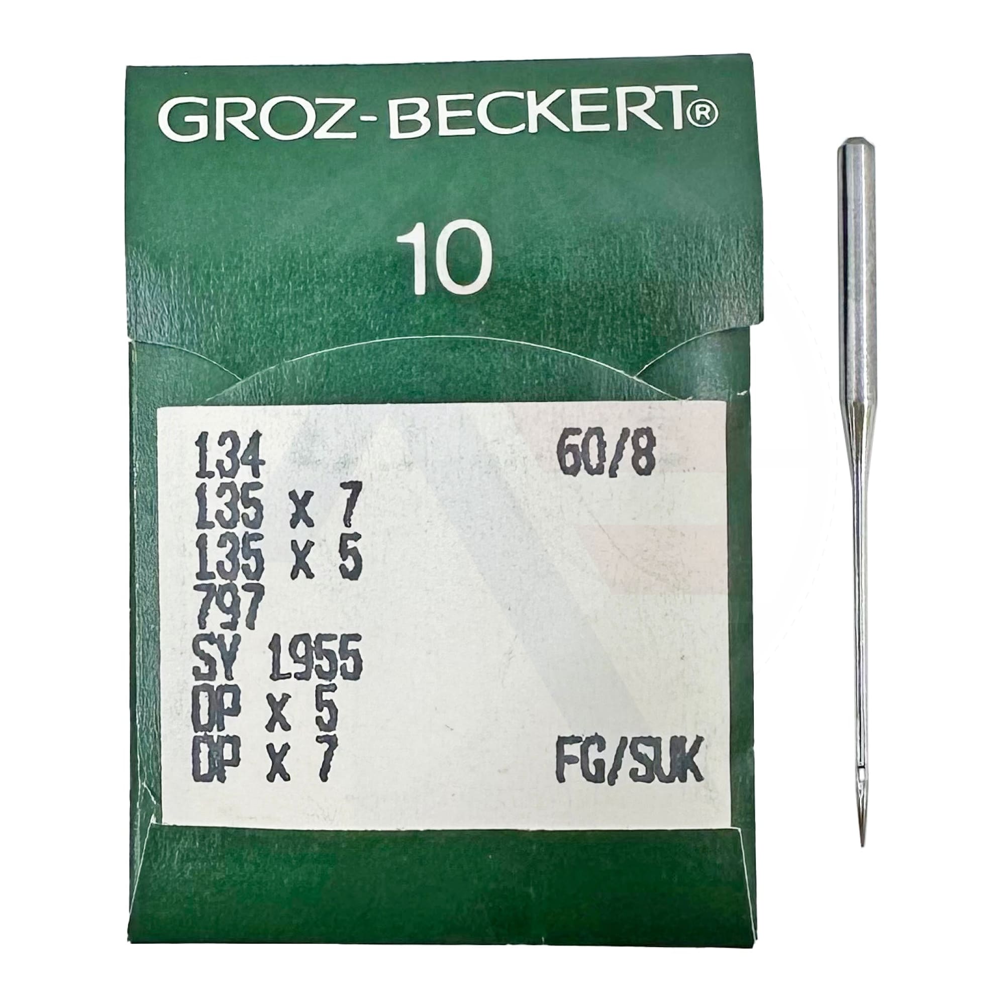 Groz-Beckert 134 FG SUK (medium ball point) size 60 industrial sewing machine needles in a pack of 10. Please note that these needles have now been discontinued by the manufacturer, so once our existing stock is gone they will not be restocked.