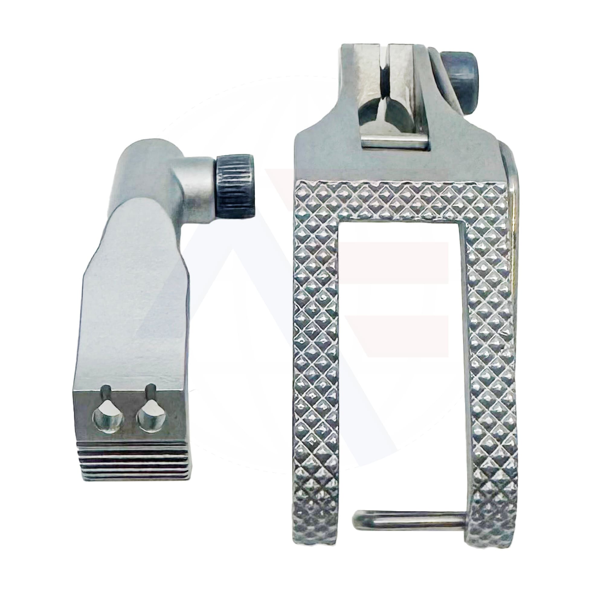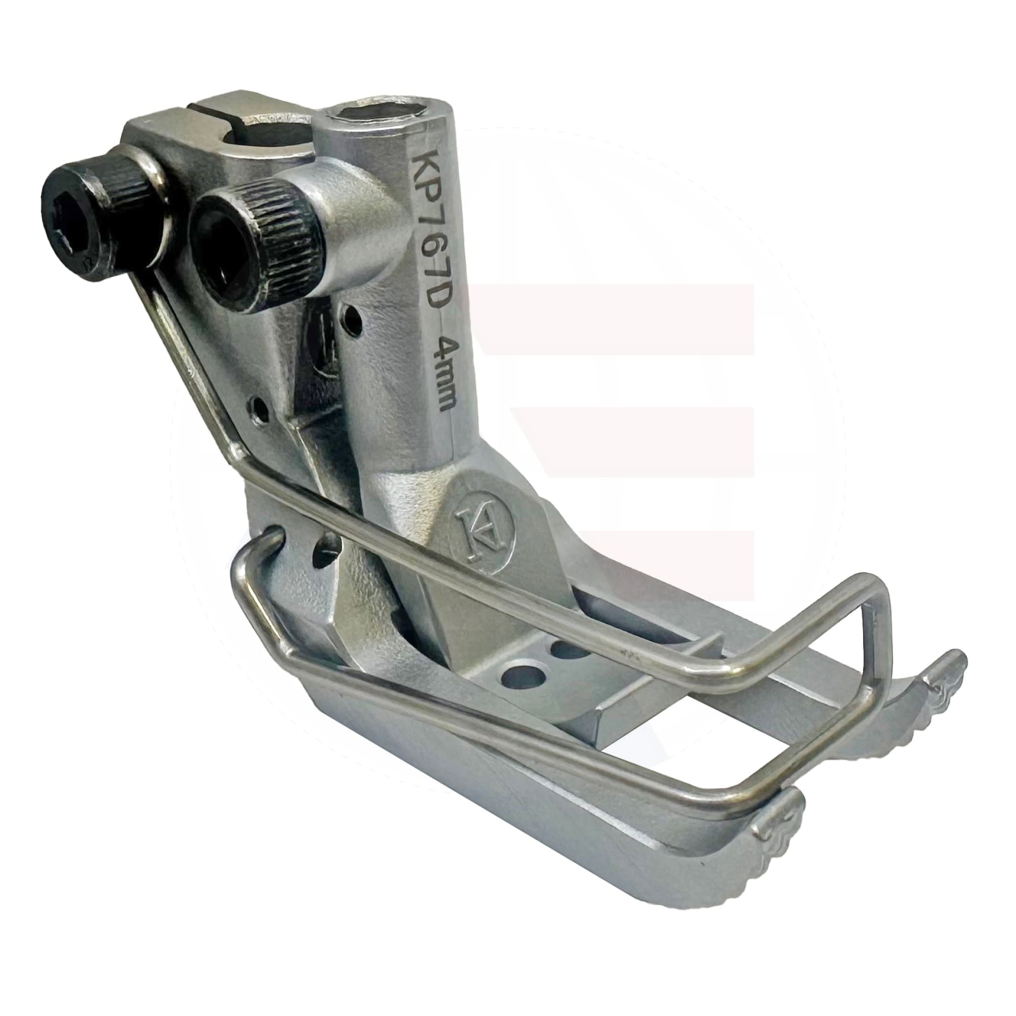 Standard twin needle 4mm gauge presser foot set including the inner and outer foot. This foot can be used with Durkopp Adler model 767 machines. Maximum stitch length is 9mm.