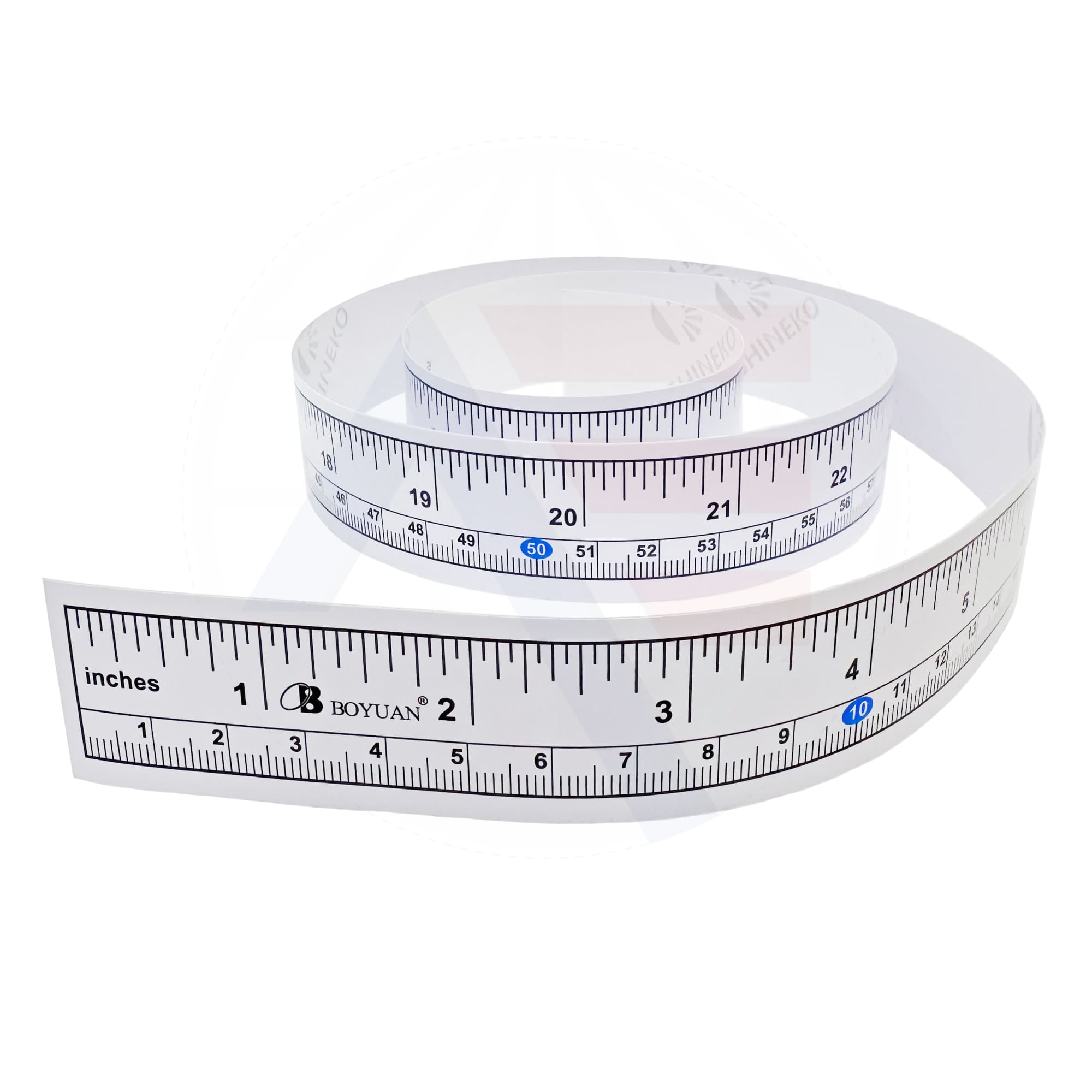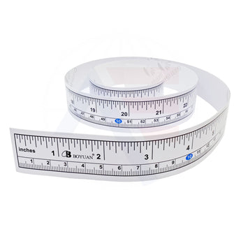 Self-adhesive measuring tape with both imperial and metric units. Measures 90cm in length. Often applied to places such as packing and cutting tables.