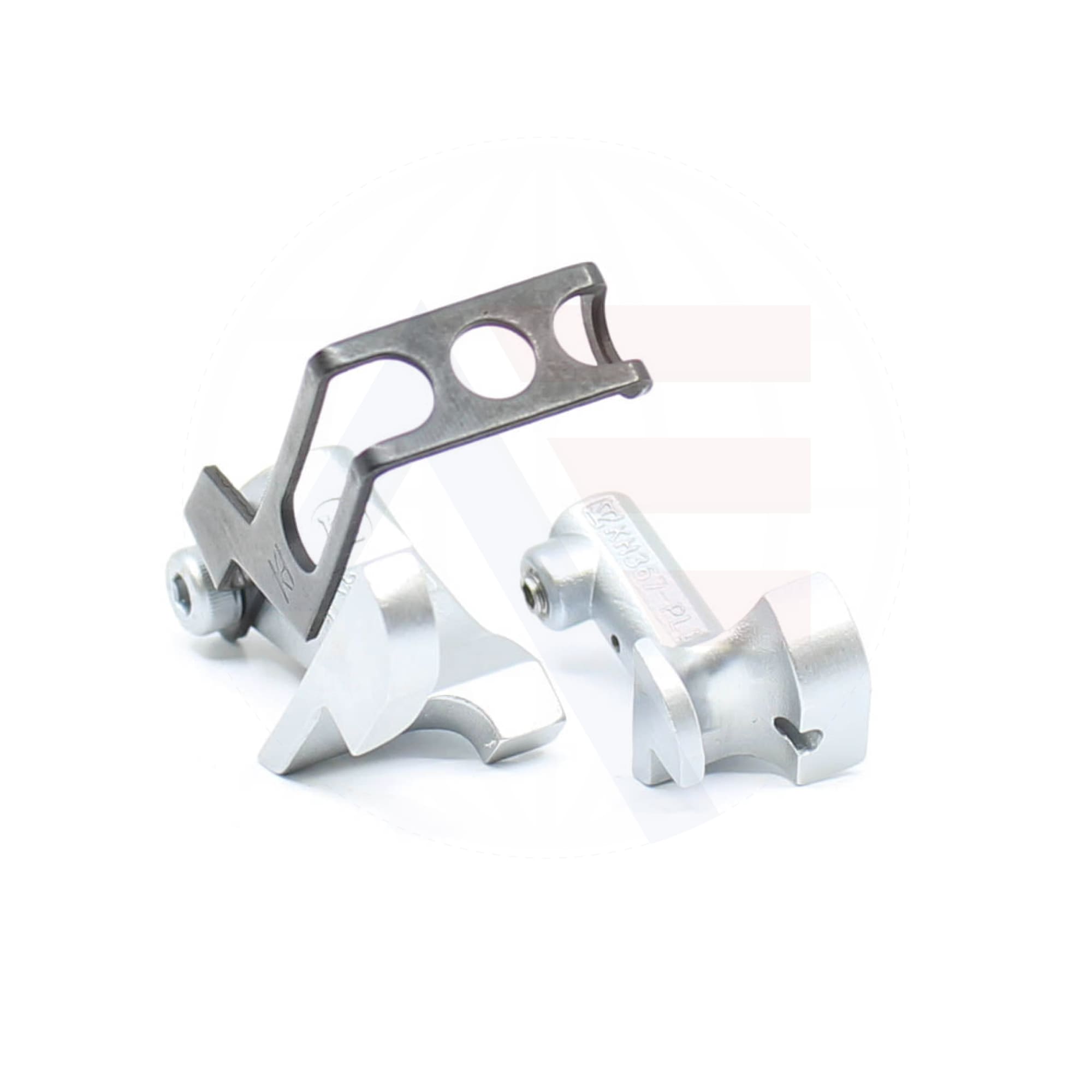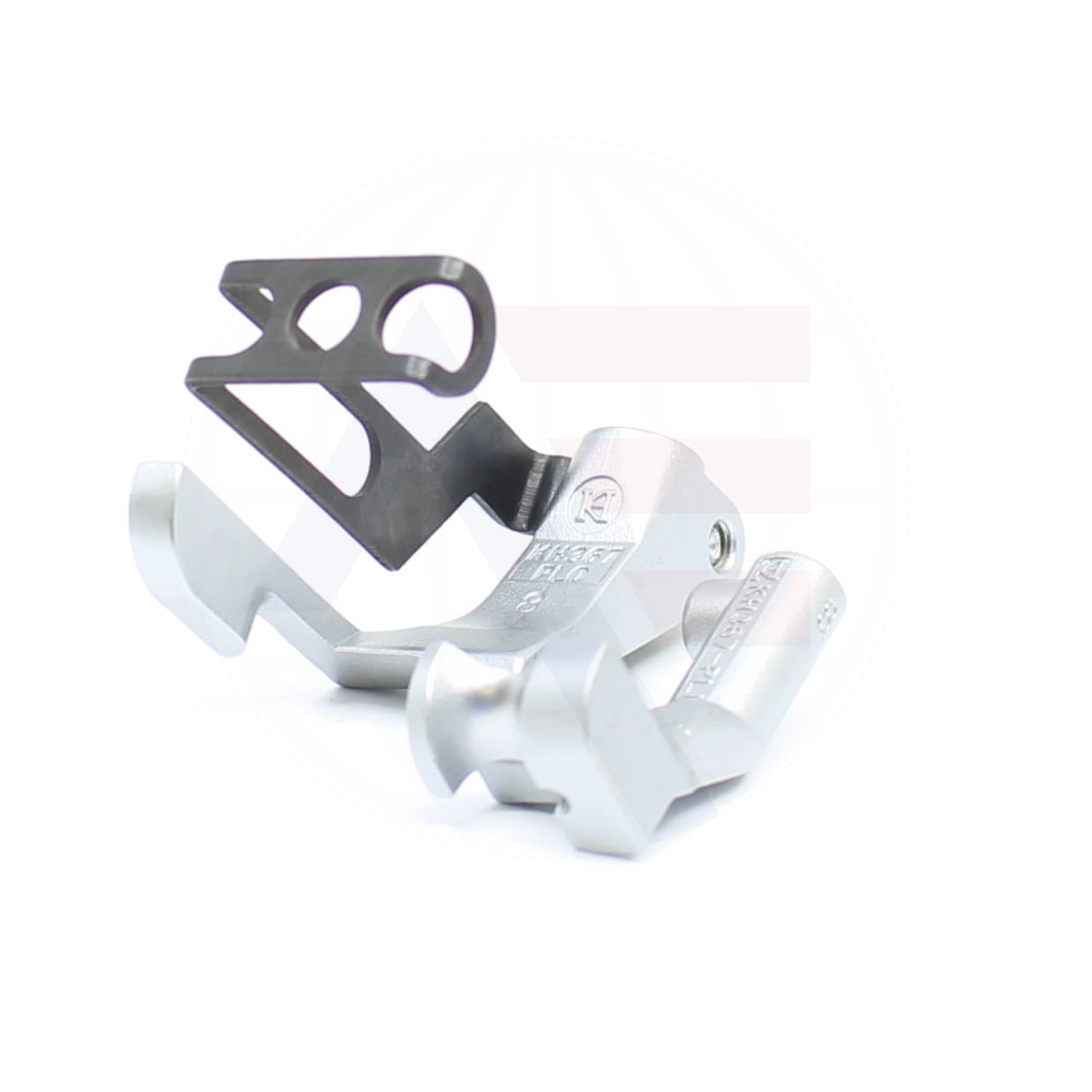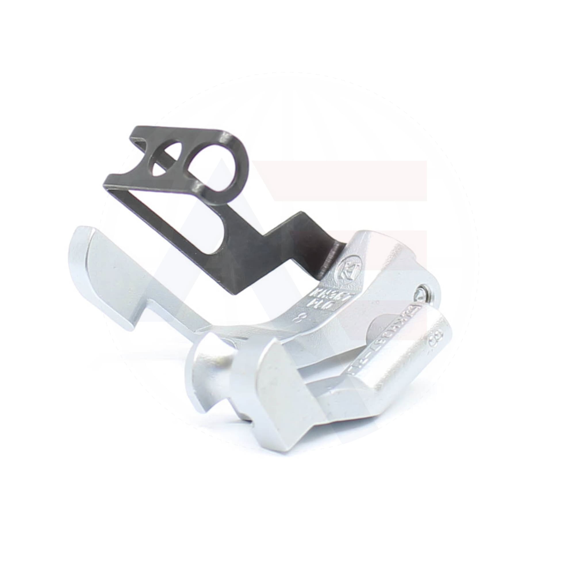 KH367X8 8mm piping foot set including the inner and outer foot, with a groove to the left of the needle. Suitable for use with Durkopp Adler 367, 467, 767, Juki LU2210, and Brother B891 machines.
