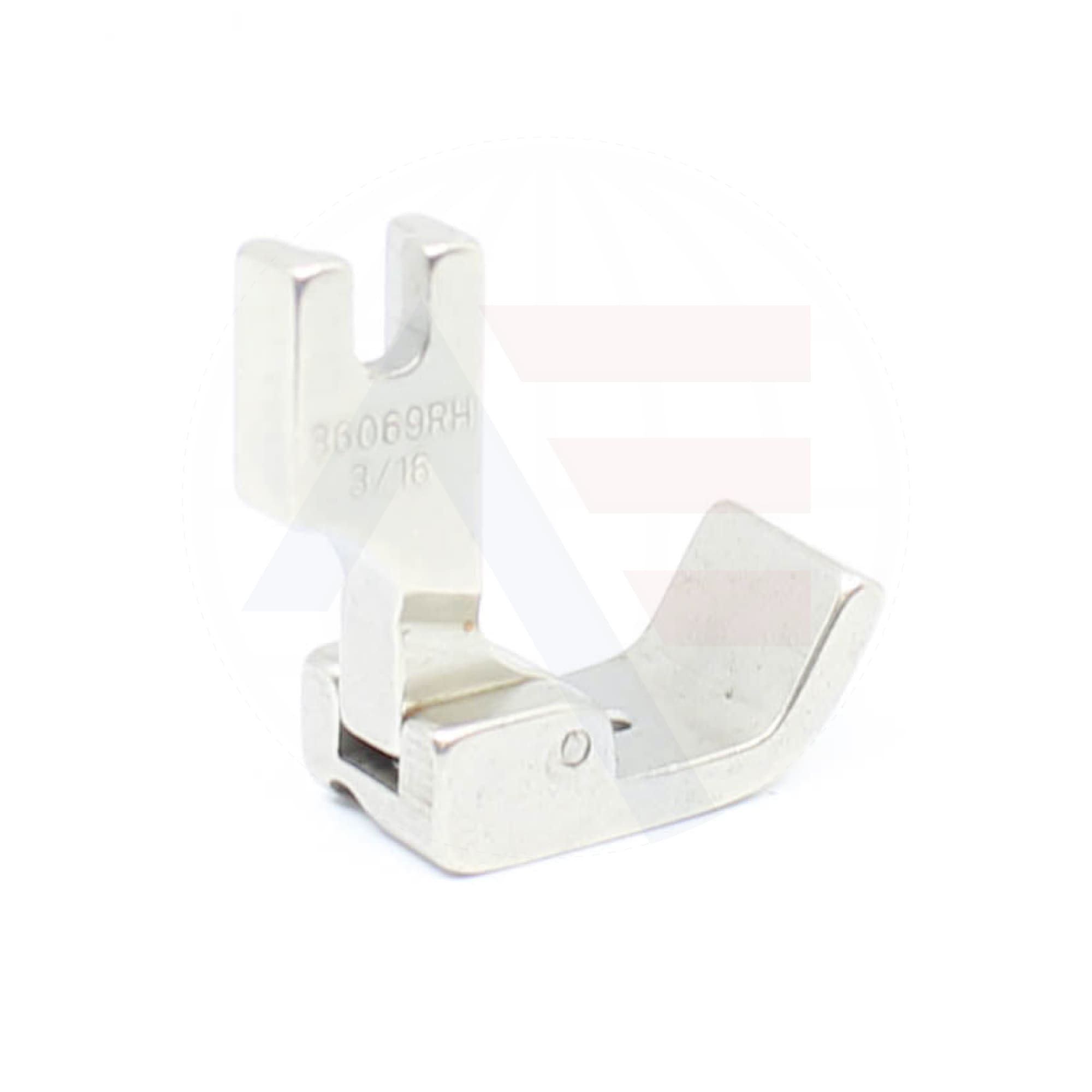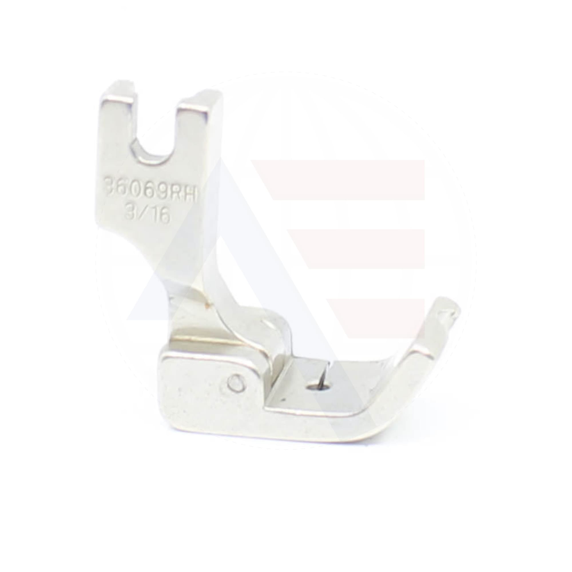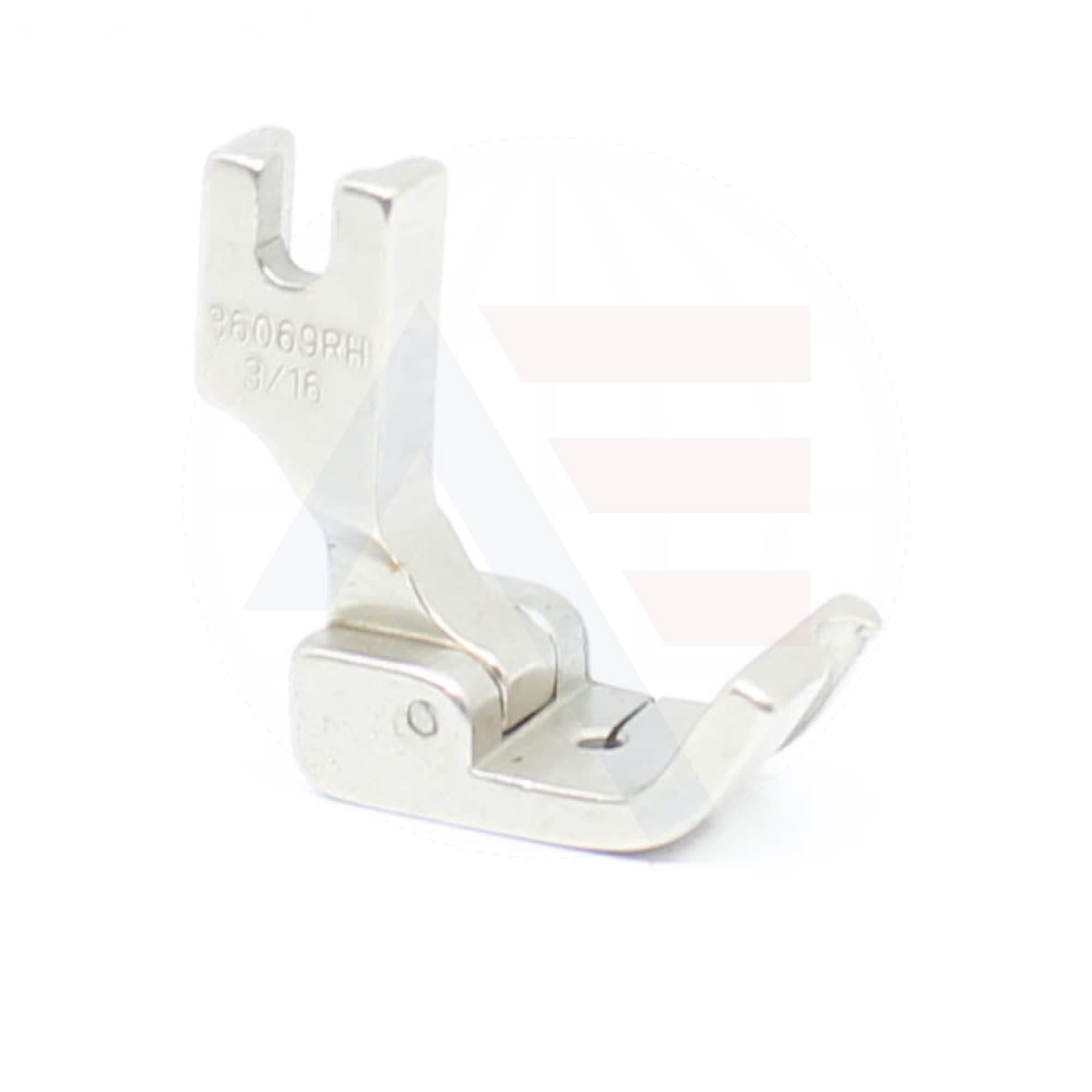 Right hand hinged piping foot R36069Hx3/16" (5mm) with a turned up front and groove. Is a universal fitting to suit most standard industrial lockstitch machines.
