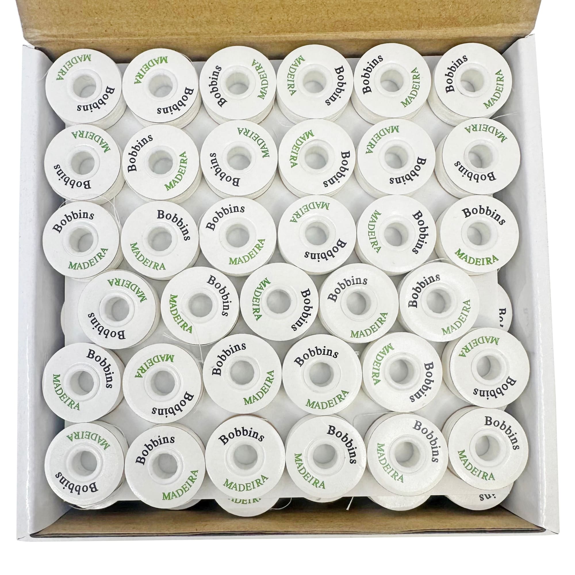 Universal pre-wound white bobbins (132 yards) in a box of 144.